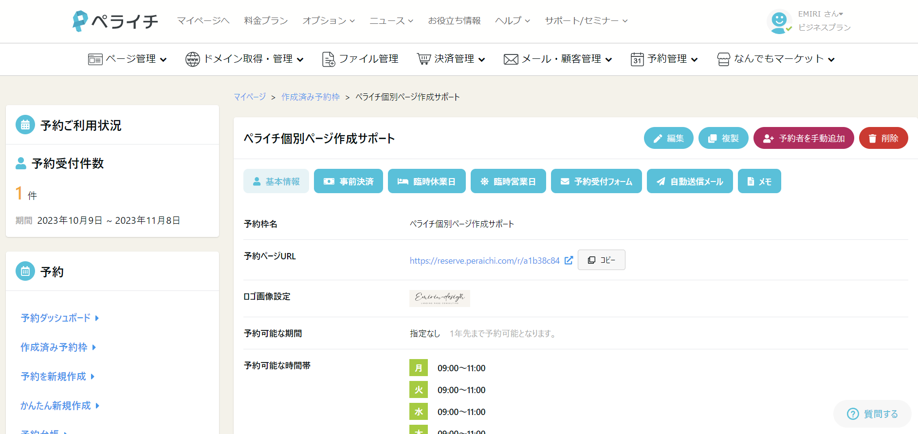 予約機能をつけたいなど、各種設定方法をお伝えすることも可能です。